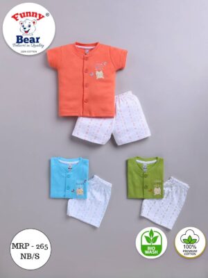Funny Bear 435/33 100% Pure Cotton Interlock Half Sleeves Front Open Unisex Infant Clothing Sets(NB/S)