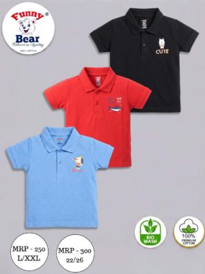 Funny Bear 145 & 164/71 100% Pure Cotton Sinker Half Sleeves Polo Neck T shirt for Boys & Girls(L/26)
