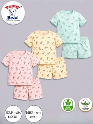 Funny Bear 428 & 528/75 100% Pure Cotton Half Sleeves Girls & Boys Printed T-shirt with Shorts(L/26)
