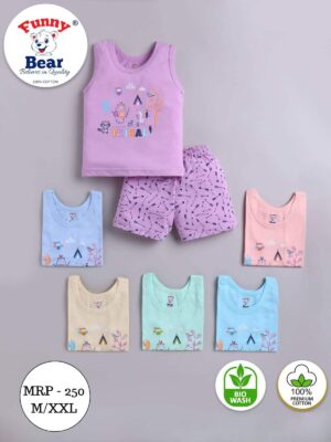 Funny Bear 148/76 100% Pure Cotton Sleeveless Printed Multicolor Girls & Boys Clothing Sets(M/XXL)
