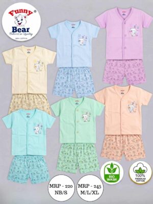 Funny Bear 104 & 101/89 100% Pure Cotton Half Sleeves Baby Front Open Suit Set for Boys & Girls(NB/XL)