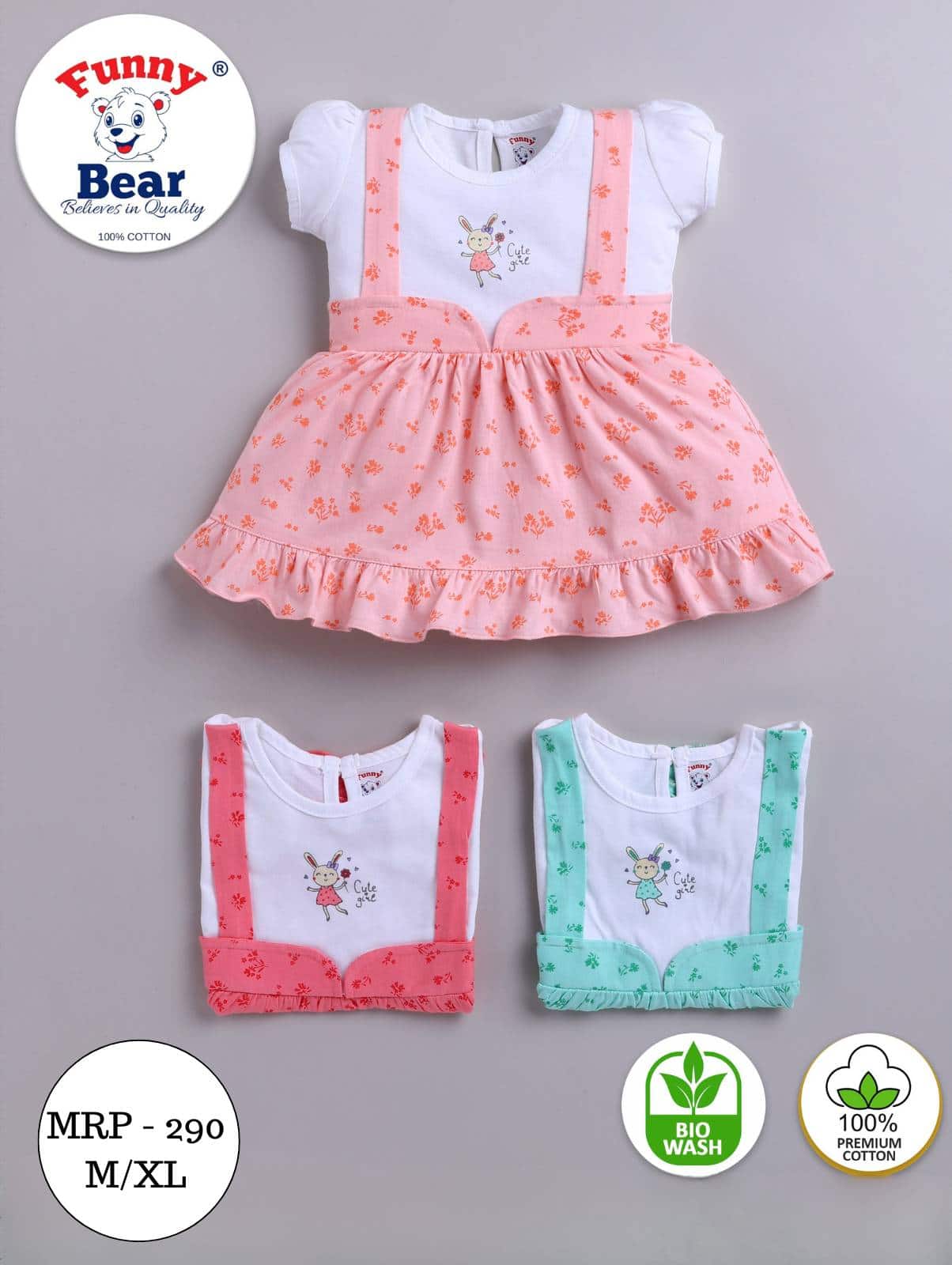 Funny Bear 520/30 100% Pure Cotton Cute Stylish Baby Girl Frocks(M/XL)
