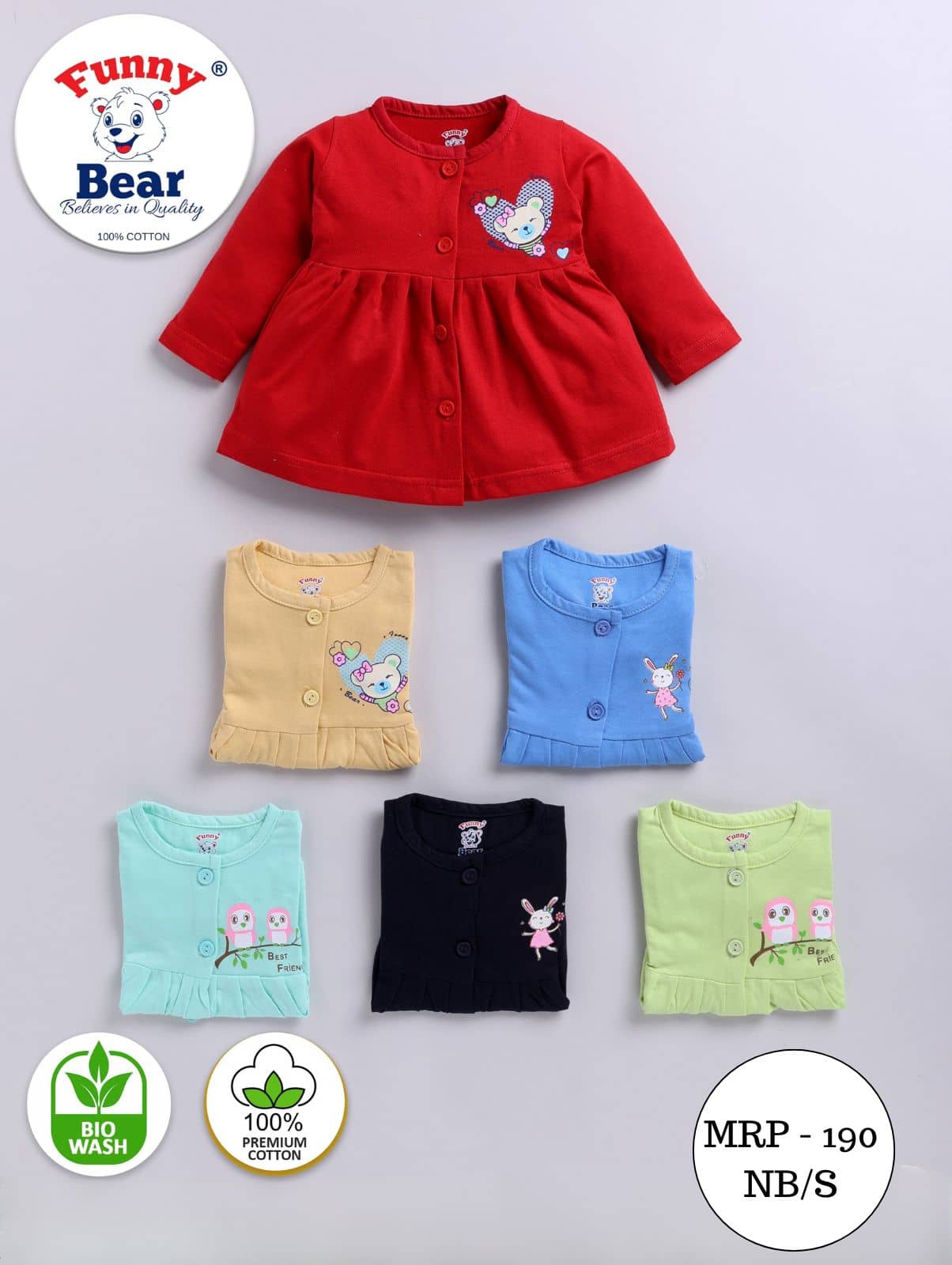 Funny Bear 209/73 100% Pure Cotton Full Sleeves Knee Length Multicolor Newborn Girl Frocks(NB/S)